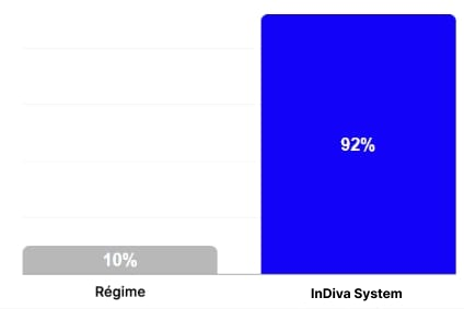 92% des participants à l'étude qui ont suivi InDiva System ont perdu plus de 12 kg en deux mois, alors que seulement 10% des personnes ont atteint ce résultat en utilisant des méthodes traditionnelles de perte de poids.